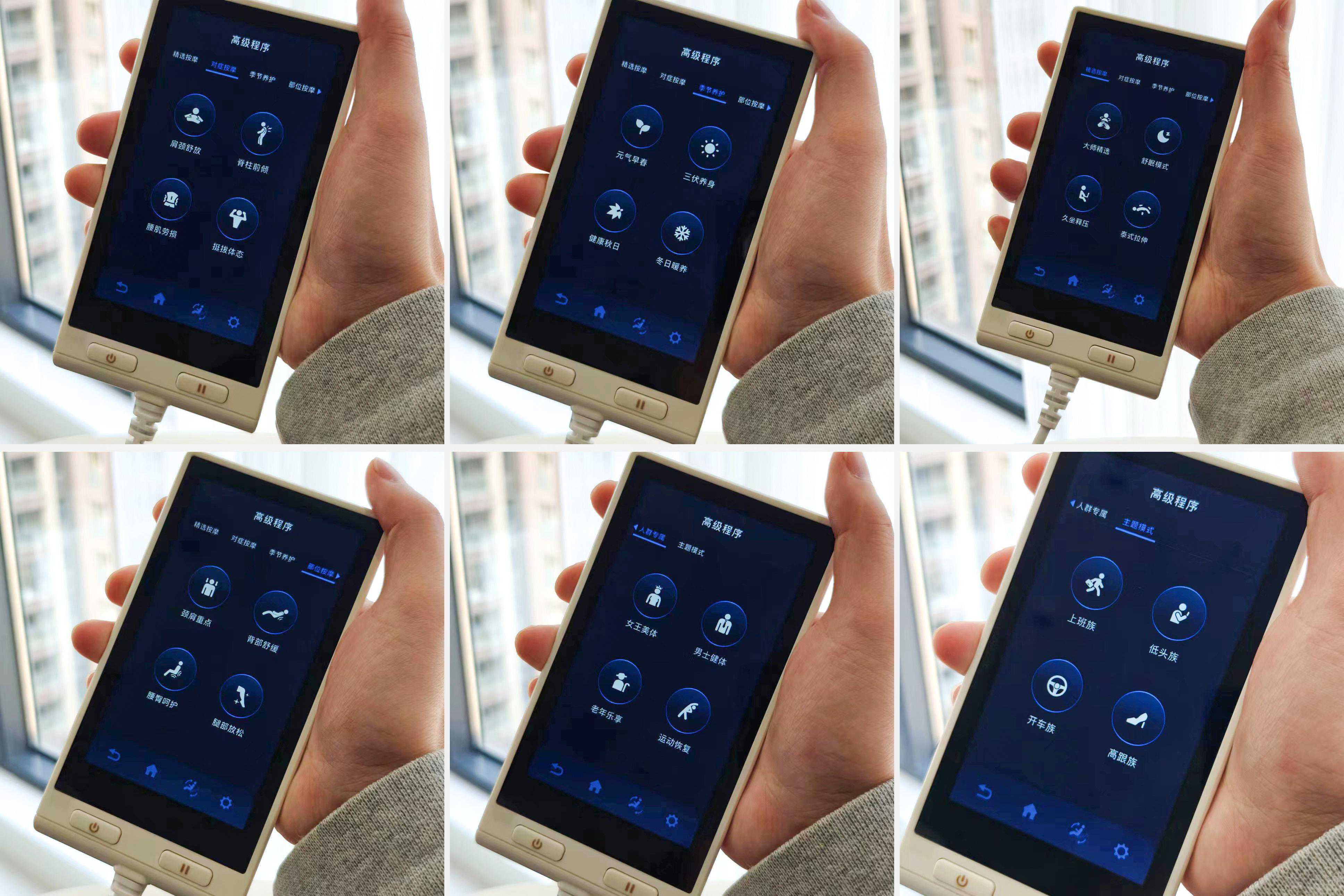 奥佳华有28套专业自动按摩程序,有4大板块,比如精选按摩、对症按摩、季节养护、部位按摩以及人群专属与主题模式,可谓是针对各种人群、各种症状都有了,十分全面,我也会偶尔各自体验过去,每一种都非常舒适。