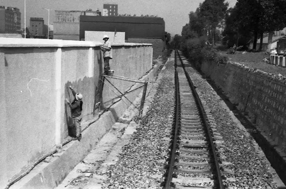 ▲2015年,滇越铁路,在铁路旁施工的工人。