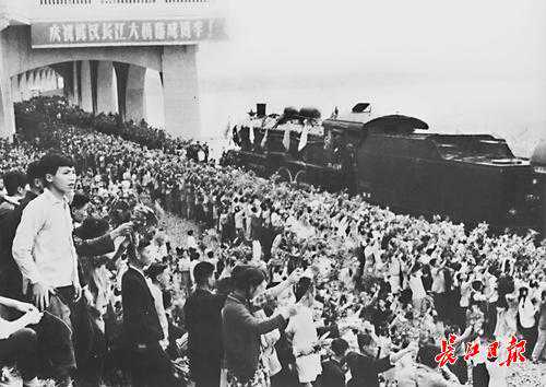 1957年10月15日,武汉长江大桥通车,第一列火车驶过长江大桥。记者梅村摄