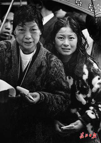 1998年4月6日,在武汉市新田公司门前,一对母女攥着传销业绩单排了两天两夜队,在雨中期盼着最后的兑现。疯狂的传销业被取缔,成千上万的“传销客”蜂拥到了新田公司。记者邱焰摄