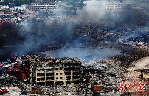 2015年8月12日23点30分左右,位于天津市滨海新区天津港的瑞海公司危险品仓库发生火灾爆炸事故,造成165人遇难,8人失踪,798人受伤。图为爆炸核心区的大坑。记者何晓刚摄