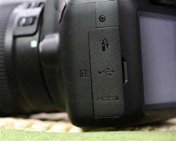 佳能EOS1300D机身左侧接口,还有NFC标识