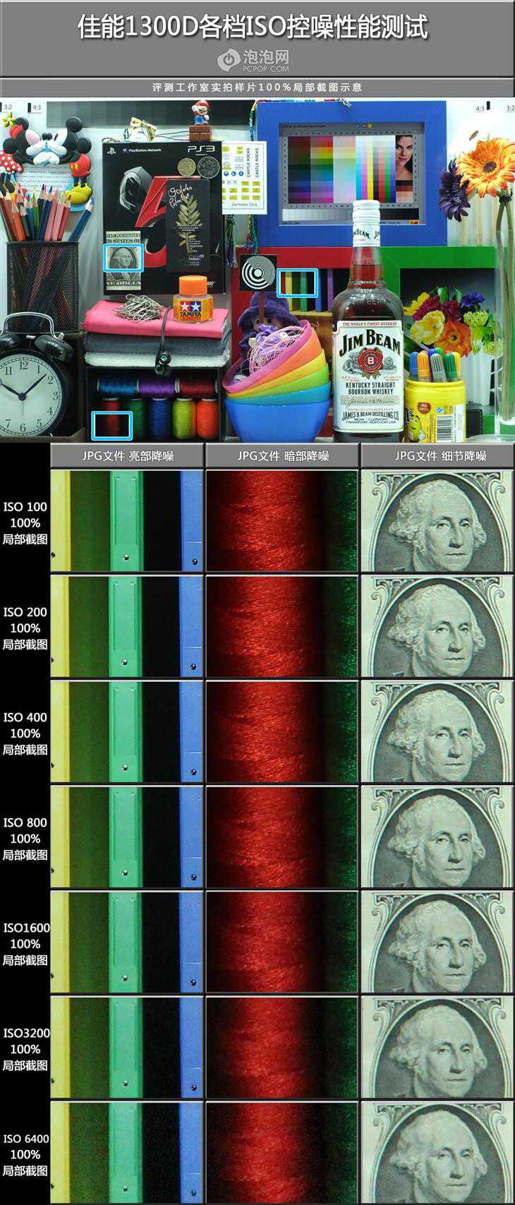 佳能EOS1300D使用了的1800万像素APS-C画幅图像感应器,感光度范围为ISO100—ISO6400,通过扩展可以达到ISO12800。对于初学者来说,这样的感光度范围也算足够,下面我们就一起看看1300D的控噪水平和画质到底如何吧。