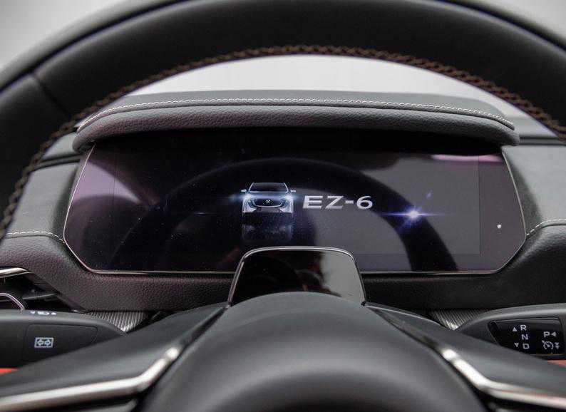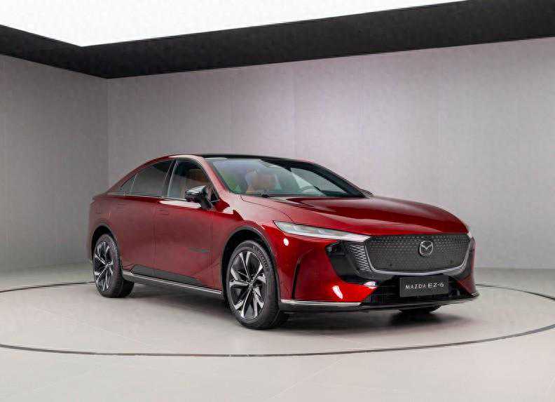 长安马自达EZ-6在2024北京车展上正式首发亮相,新车是长安与马自达联合开发的新能源车型,定位中型车,预计会在下半年正式上市。纯电版采用全新的封闭式格栅设计,格栅面板底部以及两侧都采用LED光源,配合发光的品牌Logo,营造出众的科技感。LED日行灯细长锐利,远近光一体式大灯隐藏于黑色面板内部,高配车型预计将支持自适应远近光灯功能。两侧采用夸张的通风口造型,底部格栅进行镂空处理,起到了散热的作用。