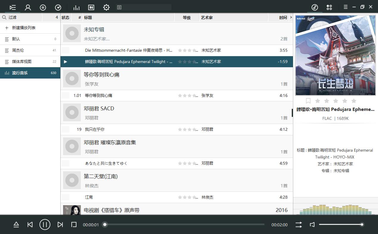 用Foobar2000听本地无损高清音乐是我很喜欢的听歌方式,使用了HIFIMAN(海菲曼)EF600解码耳放一体机之后,比如放一些自己喜欢的歌就非常方便了。一首叫《仲夏夜绮思》的音乐,就塑造了一个弦乐组和电吉他的对抗场景,在没有设置耳放一体机之前,这种对抗性被削弱了,原因是弦乐中仅能清晰展现小提琴,钢片琴和管风琴的呈现不足。在增设了这款一体机之后,所有乐器的声音都更加明显了,体现出来的对抗更加激烈,让我更加享受。