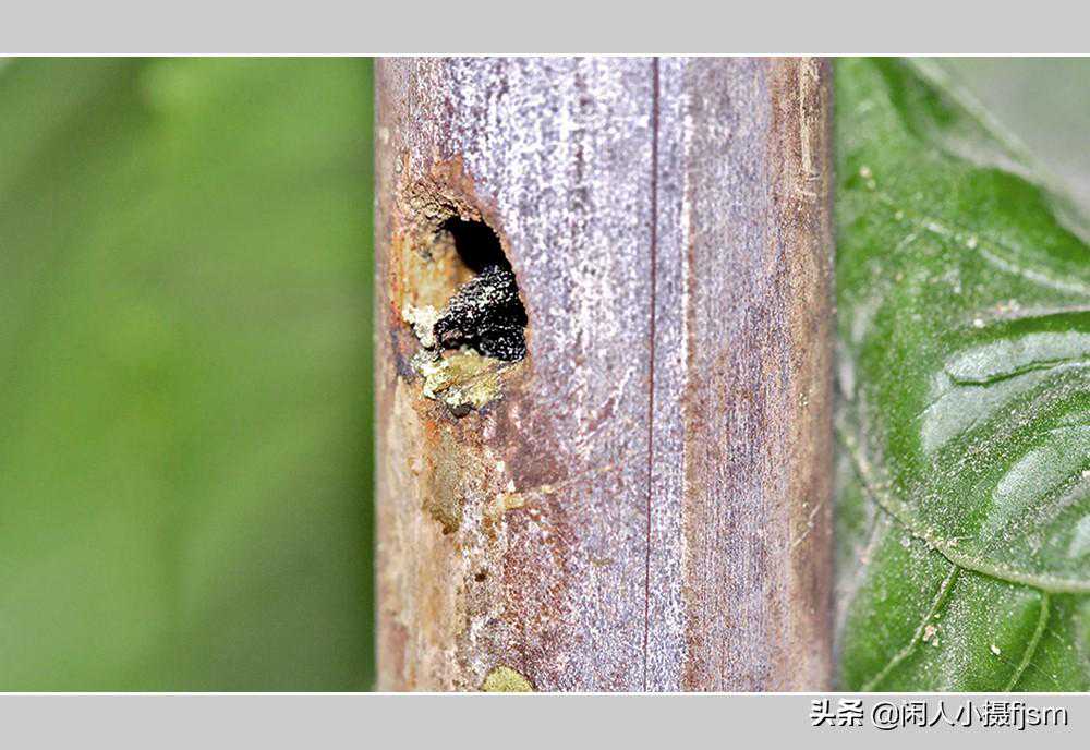 那天,如果不是亲眼所见,真不敢相信,皮坚肉硬的竹杆上,可以被一只木蜂用大锷咬凿出洞,改造成蜂巢。那只木蜂,便是:铜翼眥木蜂。