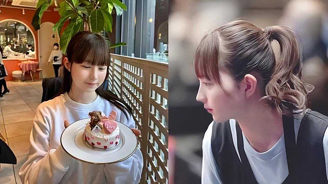 帖子晒出了她不同时期的两张照片,分别是穿着学生制服(中学)的侧脸照,和她比赛时(大学)的侧脸照。