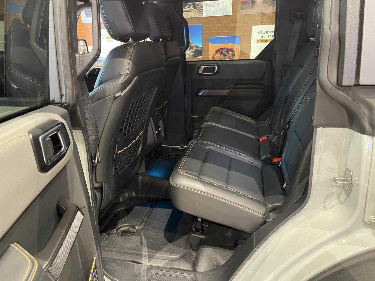 得益于2950mm的轴距,福特烈马的后排空间还算可圈可点,腿部空间是比较宽裕的,不过头部空间略微差点意思。同时,它的后排地台有略微的凸起,对于中间乘客并不是那么友好,而且它后排的座椅靠背并不是非常仰的状态,所以在后排的舒适性是要打一个折扣的。前面也说了,这台车采用的是可拆卸式的车顶,在后期拆卸之后可以充当一台敞篷车使用,整体开起来的感受也要更加的惬意。