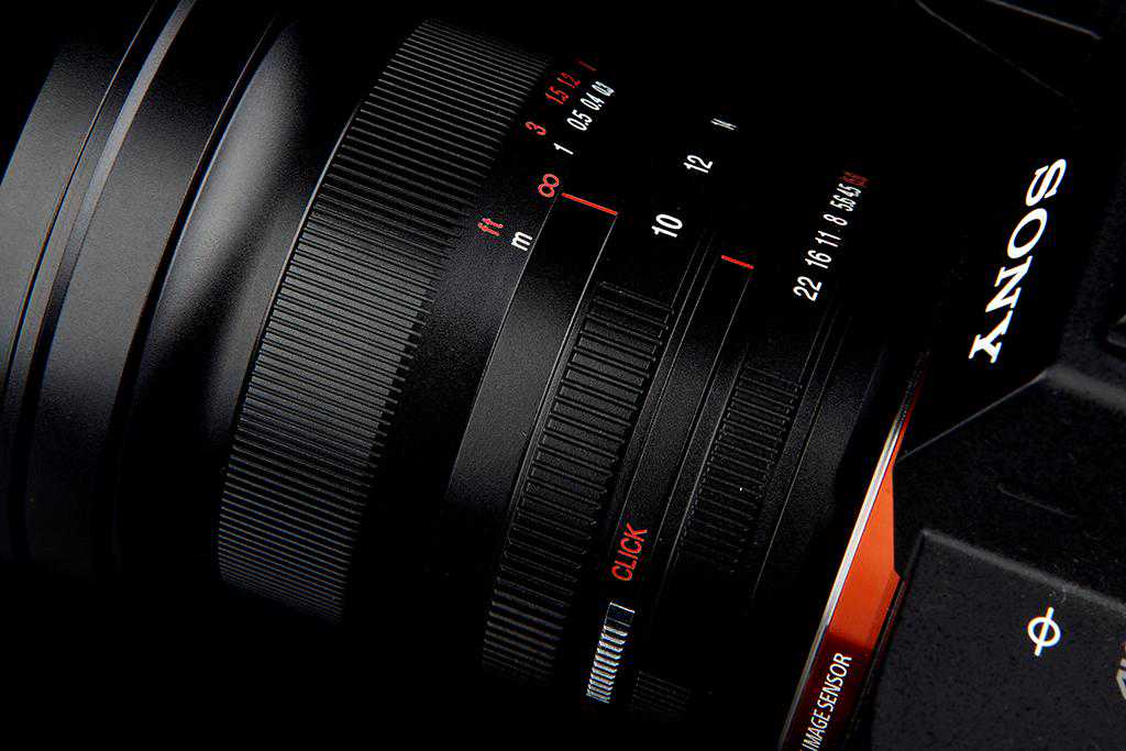 镜身上配有对焦标尺,变焦环,对焦环,光圈环,另外还配有光圈环控制开关操控起来十分的方便。