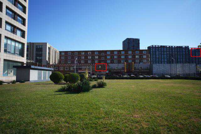 锐度测试是镜头成像中最核心的部分,也是衡量镜头分辨率的最重要的参考。对于广角镜头而言,更加看重它的它的中远拍摄距离成像。测试中笔者机身,关闭机身降噪,使用RAW格式并后期转JPG拍摄,放大测评图中红框处。