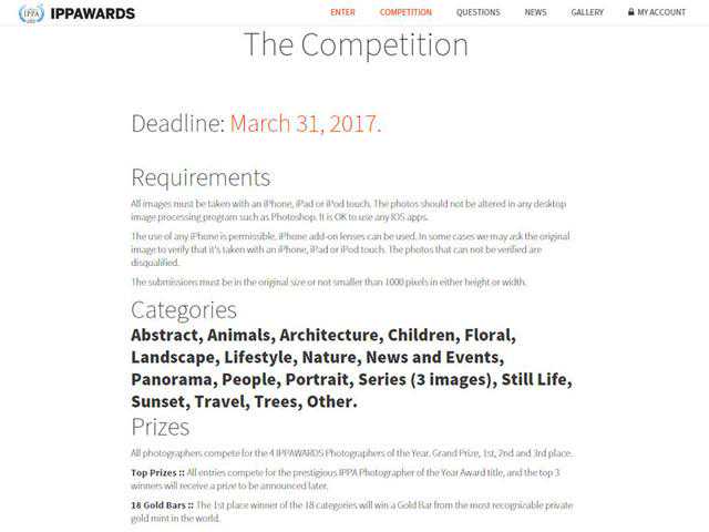 2017年IPPAWARDS报名截止日期及英文要求(图片引自IPPA官网)