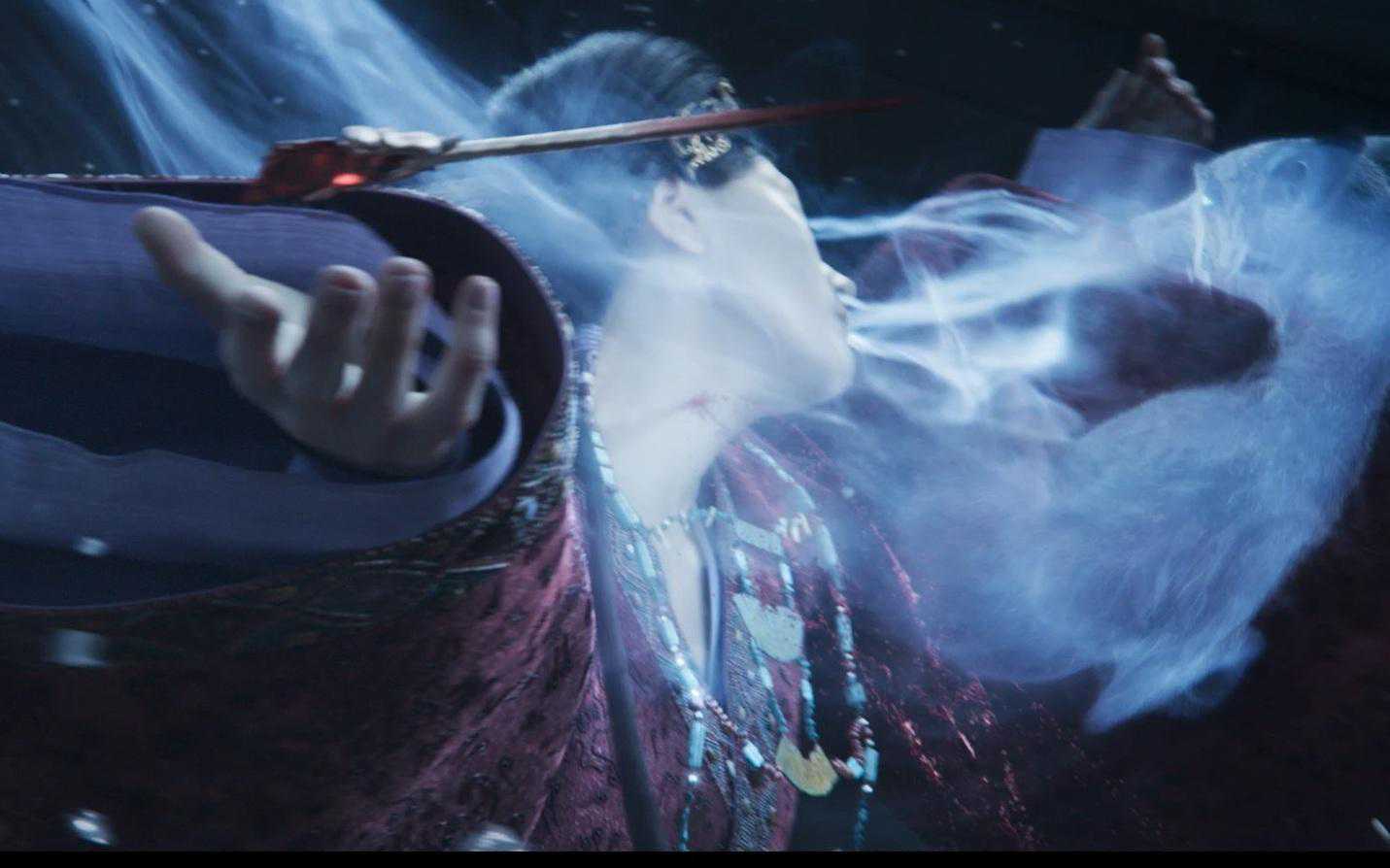 影片开场不久,有一场妲己在马车里旋转,狐妖附体的镜头,也属于那种观众可能看不出来,但CG制作难度极高的段落。在孙晔看来,这个镜头的难度在于,通过预览之后去分析镜头怎么运动,如何拍演员,演员怎么完成她的表演,如何与周围的环境互动,摄影怎么构图。因为实拍的时候,只有饰演妲己的演员娜然站在一个转台上,只画了一个面妆,穿蓝色衣服,除了她的面部表演是保留在画面中的,剩下全部都是通过CG制作。“这极大考验团队的智力、执行手段的经验和各部门之间的配合。马车是在翻滚的,车窗的位置一直在变,光怎么打,都是挑战”。
