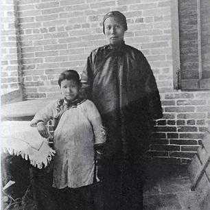 晚清时期大户人家的一名母亲和女儿。
