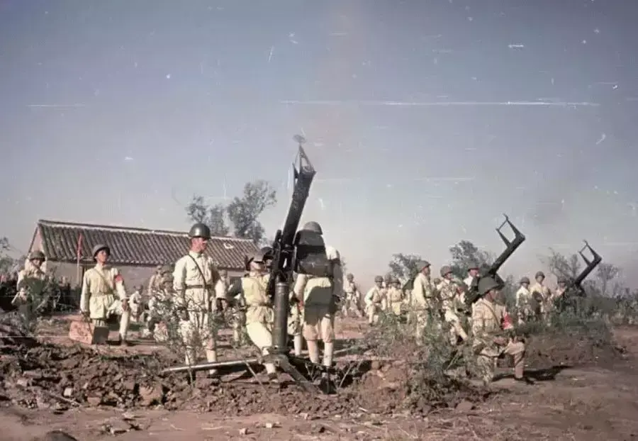 1949年4月20日开始,解放军开始渡江战役,百万雄狮过大江。图为高射炮防空阵地。