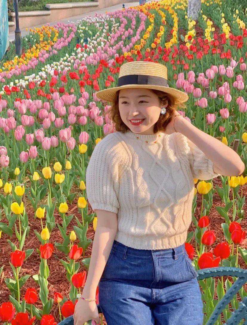 湛蓝的天,纯洁的云,阳光和微风都是温柔的,花丛开得十分密集且热烈,冷暖色调交错呼应,当奶油色滤镜与鲜艳的郁金香相遇,春日氛围感瞬间爆棚。