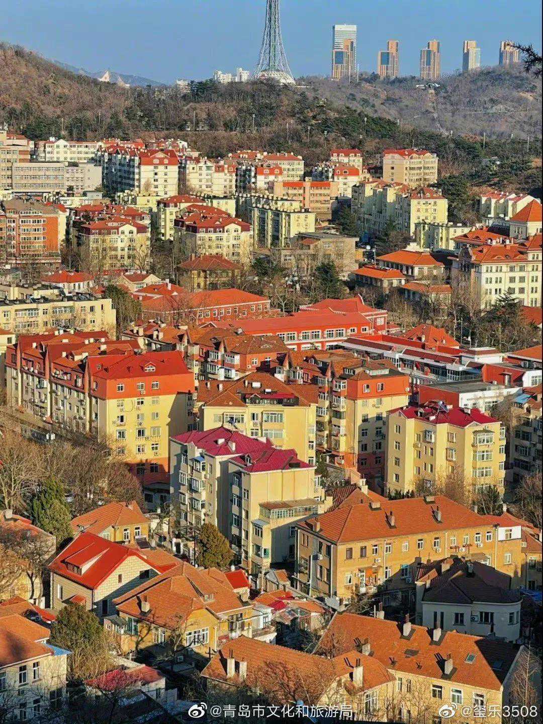 信号山公园是高空俯瞰青岛老城区的最佳地点,登上山顶,在六曲长廊的尽头,有一个出片率超高的“半坡观景台”,所谓“三面郁葱环碧海,一山高下尽红楼”,在此处可一览无余。