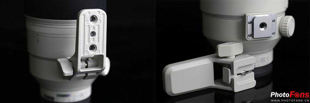 索尼拥有一个可拆卸的三脚架支架,它可以快速地连接到三脚架上或从三脚架拆卸,以便用户可以轻松的在三脚架和手持拍摄之间切换。同时支架拆卸后可减小镜头体积和重量,方便运输和储存。支架上设有锁定机构可防止意外移除。