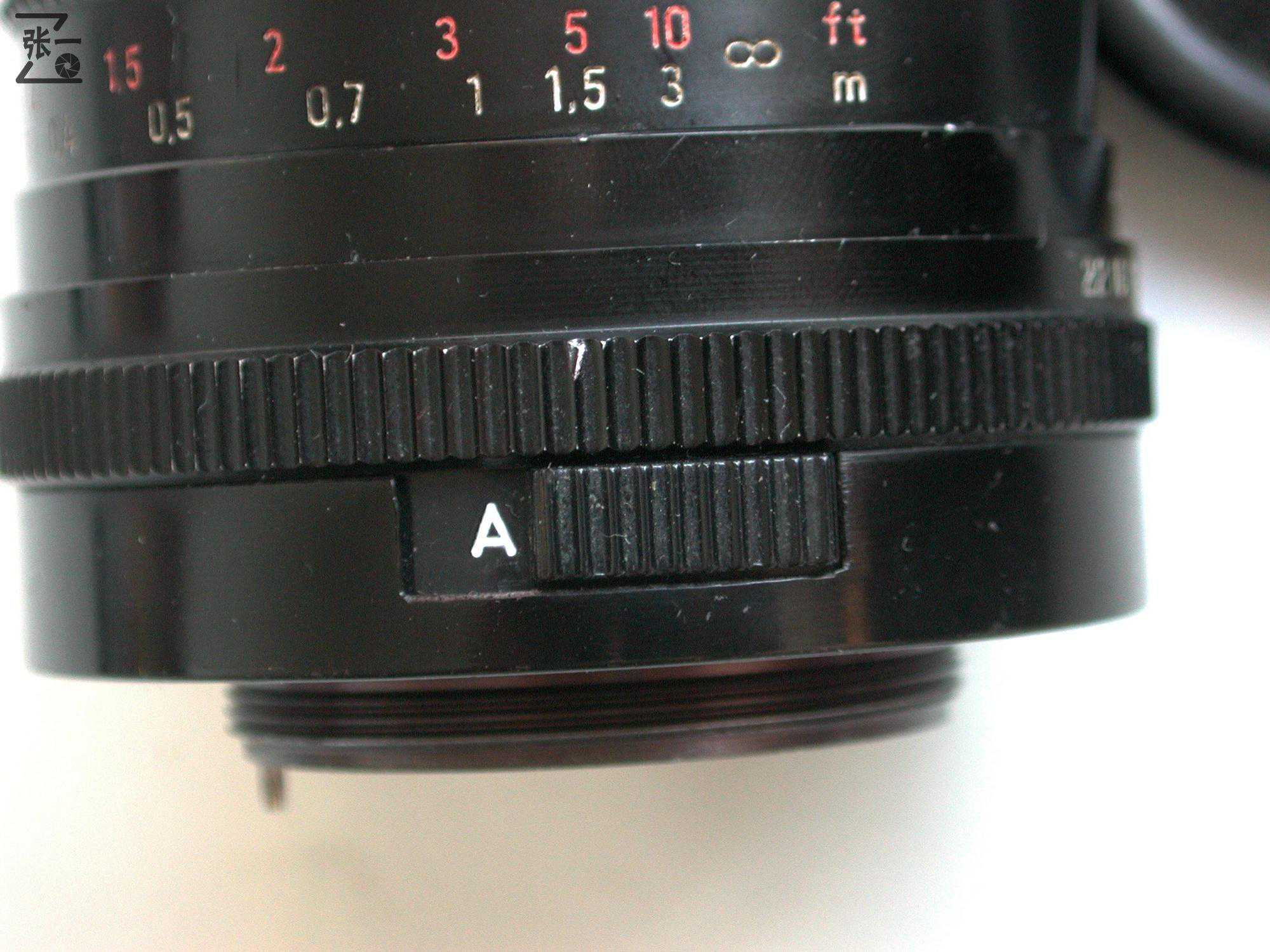 同大多数M42镜头一样,这款Flektogon35/2.4镜身上有A/M档转换开关。使用A档时,按下快门后镜头可以在大多数M42机身上自动收缩光圈,而使用M档时则只能手动调节光圈了。通常情况下,将这款Flektogon35/2.4镜头镜头转接到其它机身上使用时,通常应该使用M档,除非您购买的M42转接环带有顶针(下图黄圈内)挡板。