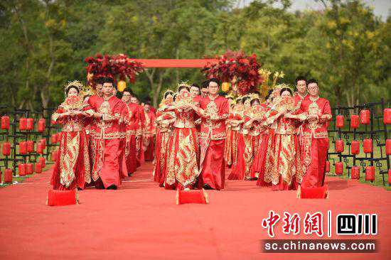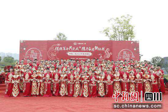 中新网四川新闻(苟克炯张清涛)幸福花开,缘定蓉城。9月9日,在浪漫的中国红里,伴随着悦耳的歌曲和幸福的礼花声,中铁二局集团公司“佳偶百年共天成携手奋进新征程”2023年集体婚礼在成都金牛宾馆盛大举行。