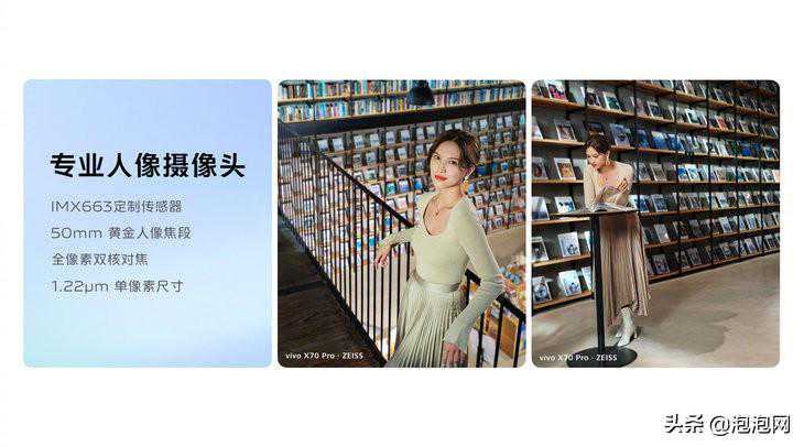 vivoX70系列专业人像摄像头采用IMX663定制传感器,拥有2PD技术,支持全像素双核对焦,再加上最接近人眼看到效果的黄金焦段,让拍摄出的人像效果更明亮、真实。