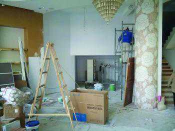店面已经租给别人,师傅正在紧张装修。