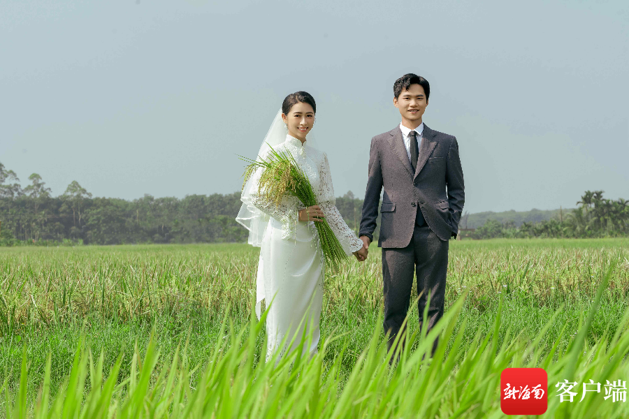 “这可是我和老伴结婚近50年来的第一张婚纱照!”来自墨桥村委会东湖村72岁的农户黎基山和老伴身着婚纱礼服在颗粒饱满金黄的福稻前肩靠肩,灿烂的笑容映衬于稻浪之中。这里可是他们种植了一辈子的水稻田。