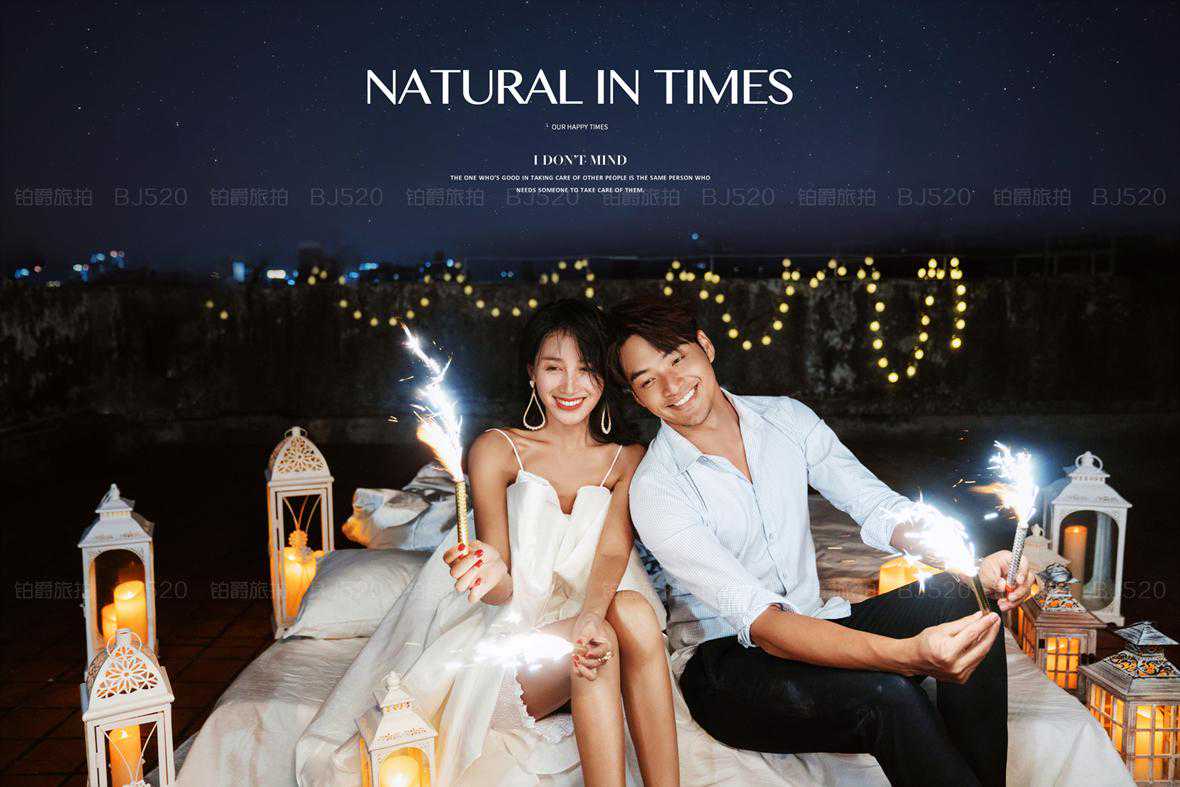 对于拍婚纱照而言,日光下的照片自然是主旋律,夜景片通常很少,大都是作为补充或是随性的记录。下面就一起来看看铂爵旅拍为大家推荐的夜景婚纱照。