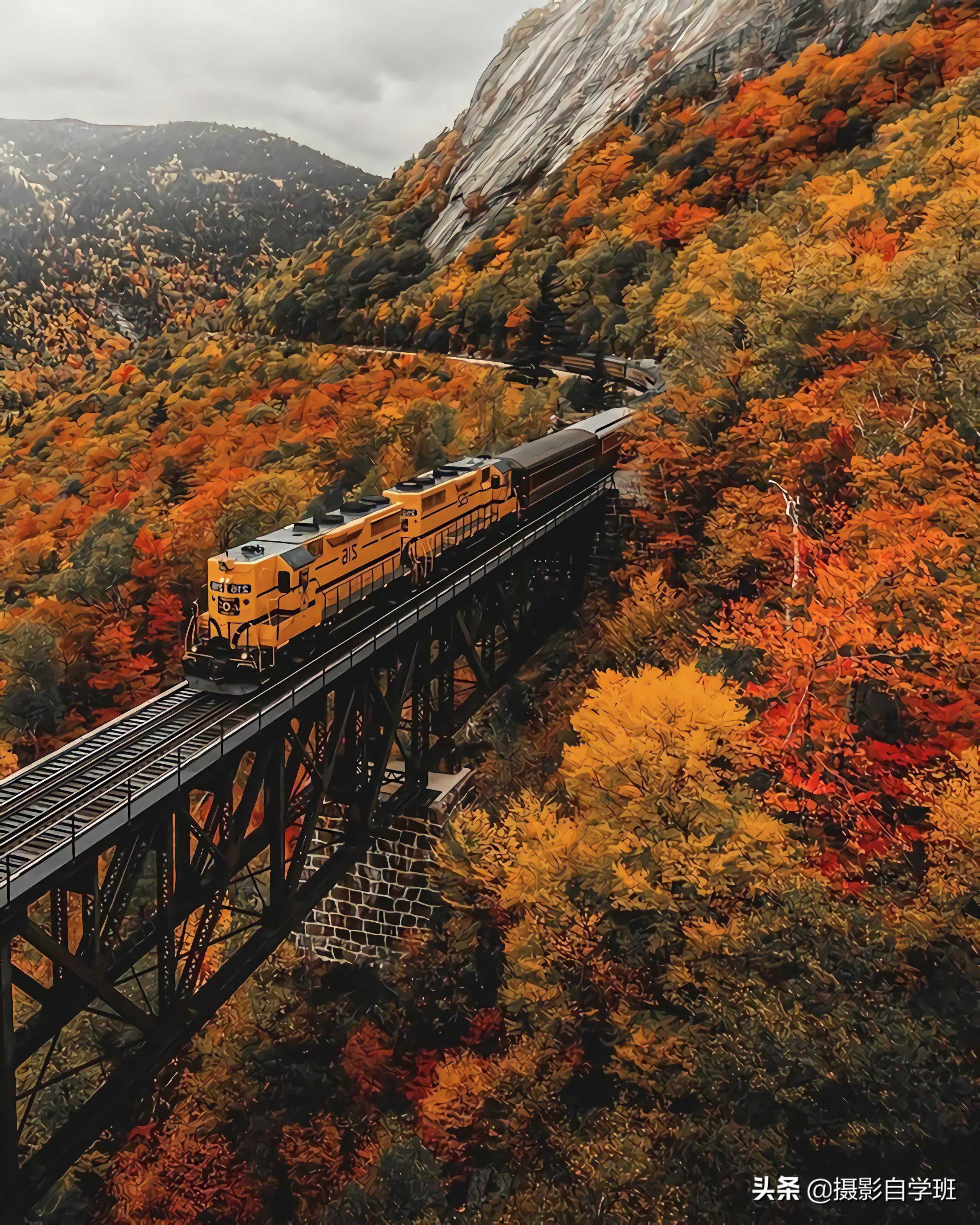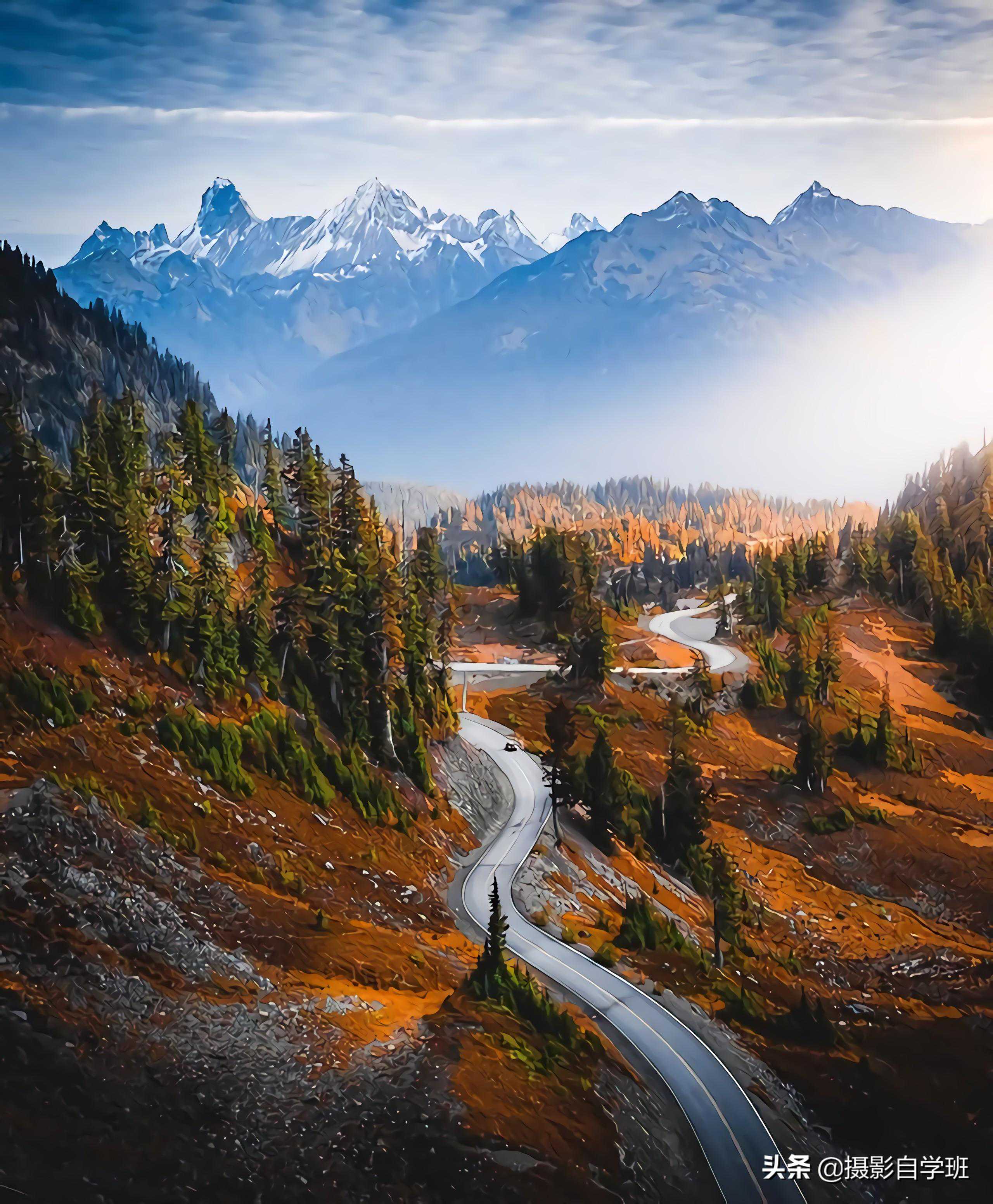 如果你所处的角度,没办法让你顺着路拍,只能截取其中的一段,像上图这种铁轨,此时你就要适当调整方位,尽量让铁轨,位于照片接近对角线的位置,这样可以增加照片的结构感。而如果可以顺着路延伸到方向拍,无论春夏秋冬哪个季节的景色,在遇到路的时候,都顺着路拍,这样照片更有纵深感。