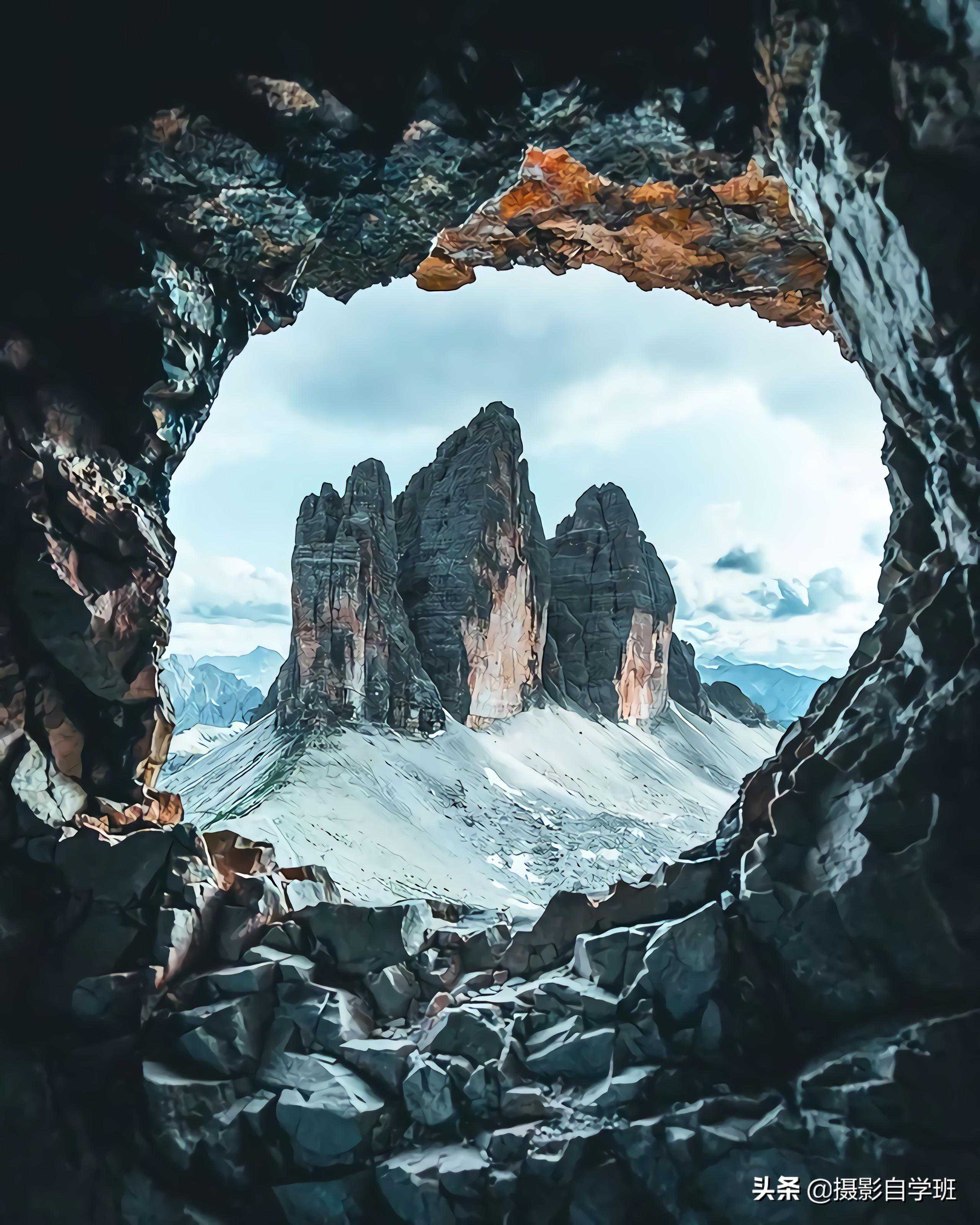 普通人在没有拍摄经验时,要先积累经验,在拍摄前,先确定重点,在拍摄时,要先学会寻找自然的相框,这个框,只是概念上的框,很多时候并不规则,像上图这样。然后改变角度,让所拍的重点,位于这框中,比如上图的小房子,比如下图远处的山。这种方法,也被很多人称为框式构图。使用框式构图时,一定要注意,一定要有重点,因为你是为了拍重点,而不是为了拍框。
