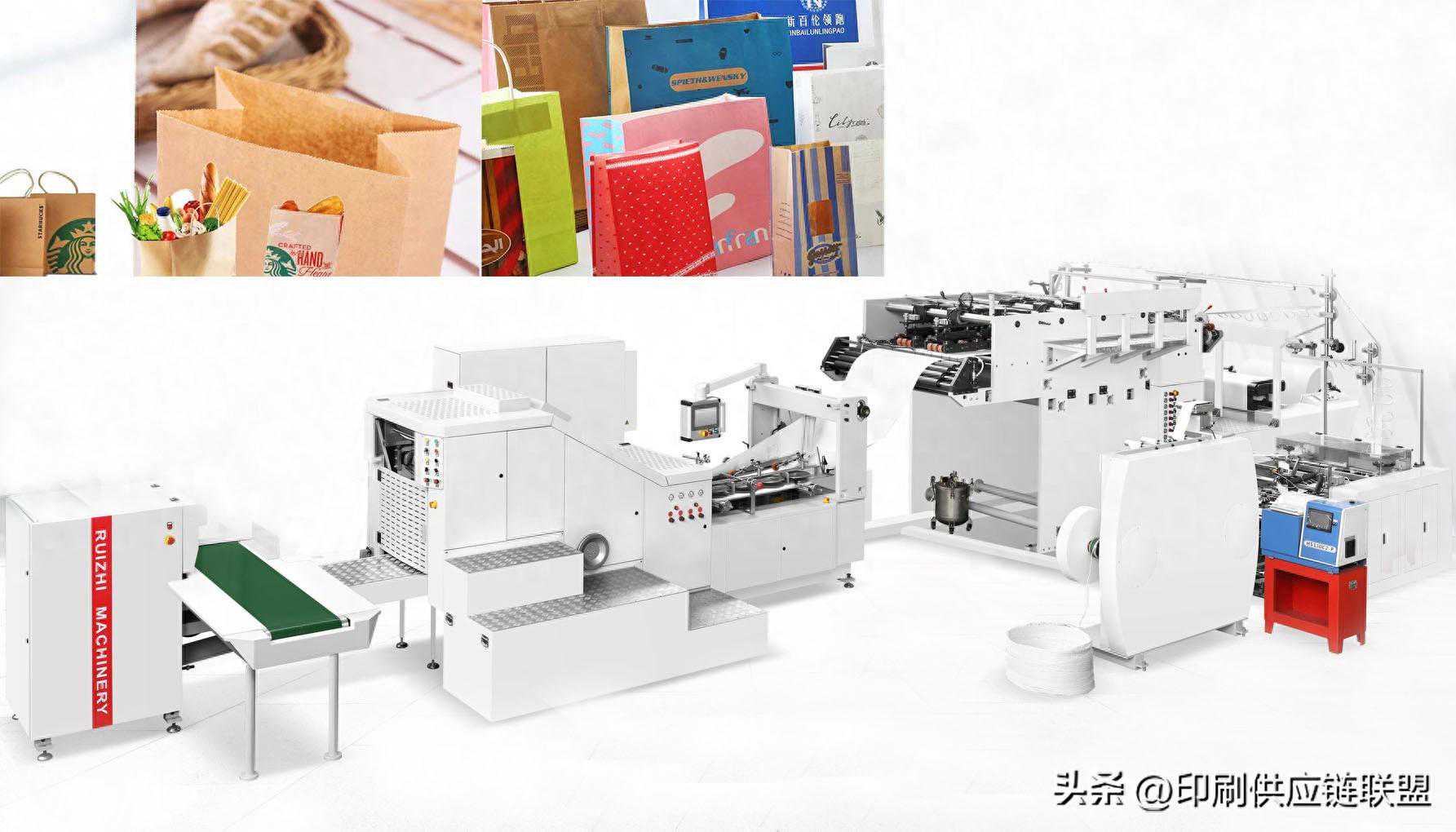 再由主机将贴有手挽的纸张进行涂边胶、成筒、切断、压痕、底部涂胶、袋底成型并输送出袋,整个过程一次性同步完成。