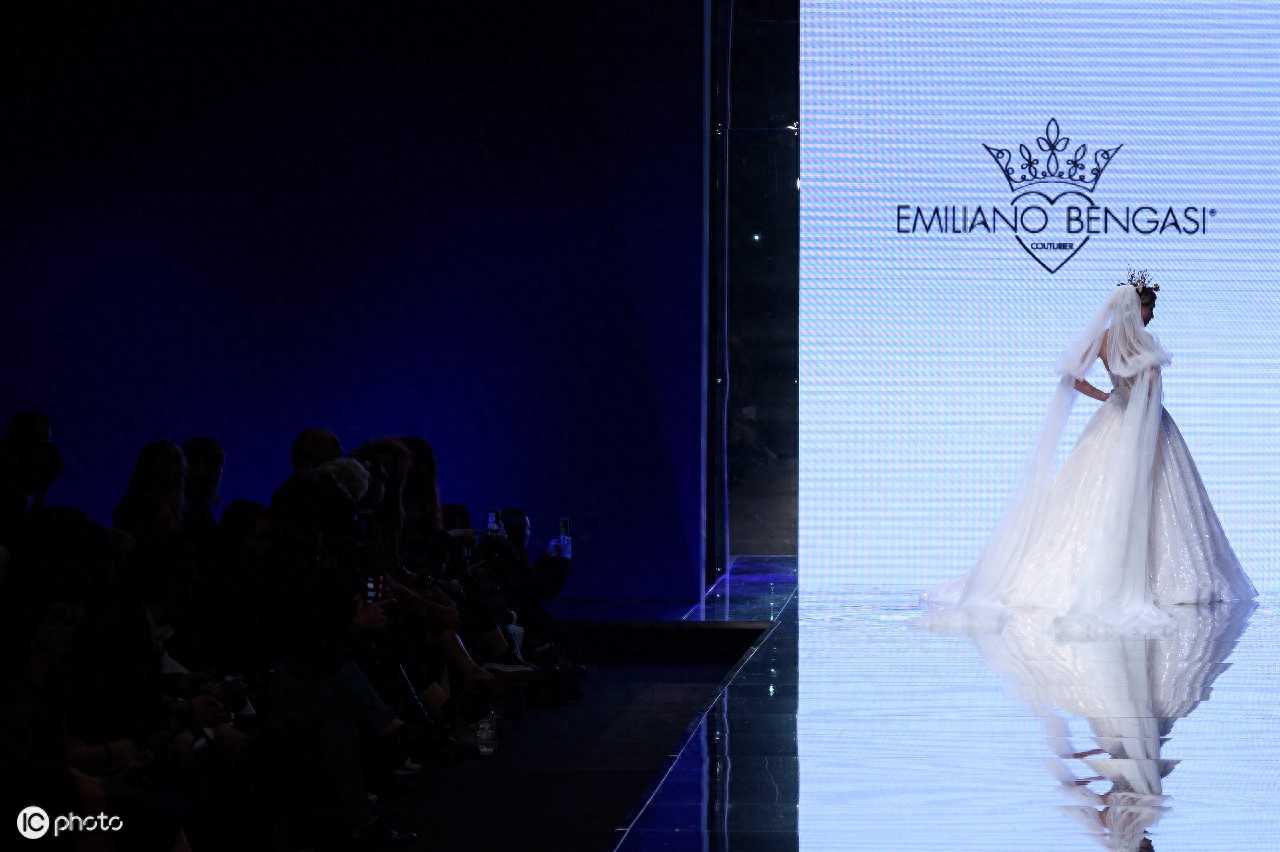 模特穿婚纱走T台(图片来自ICphoto)